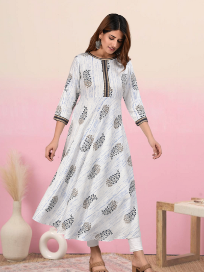 Rayon Tie Dye Floral Print Anarkali Kurta