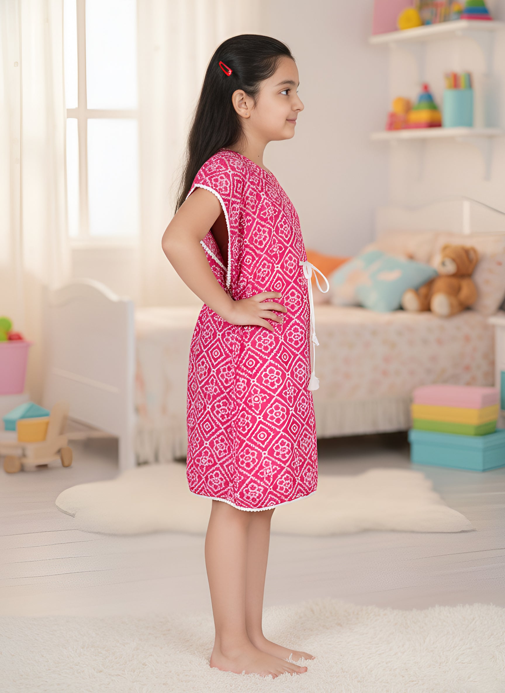 YASH GALLERY Kids Bandhej Printed Kaftan Dress