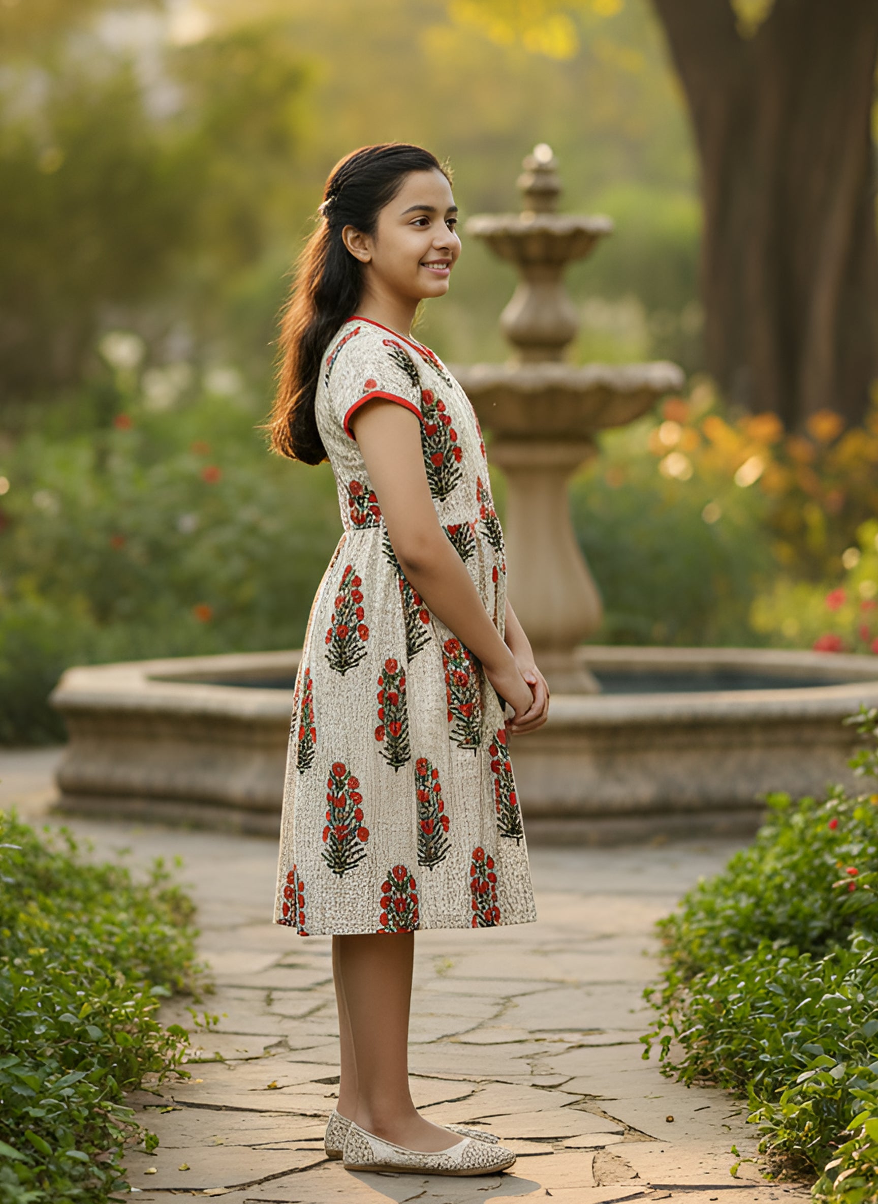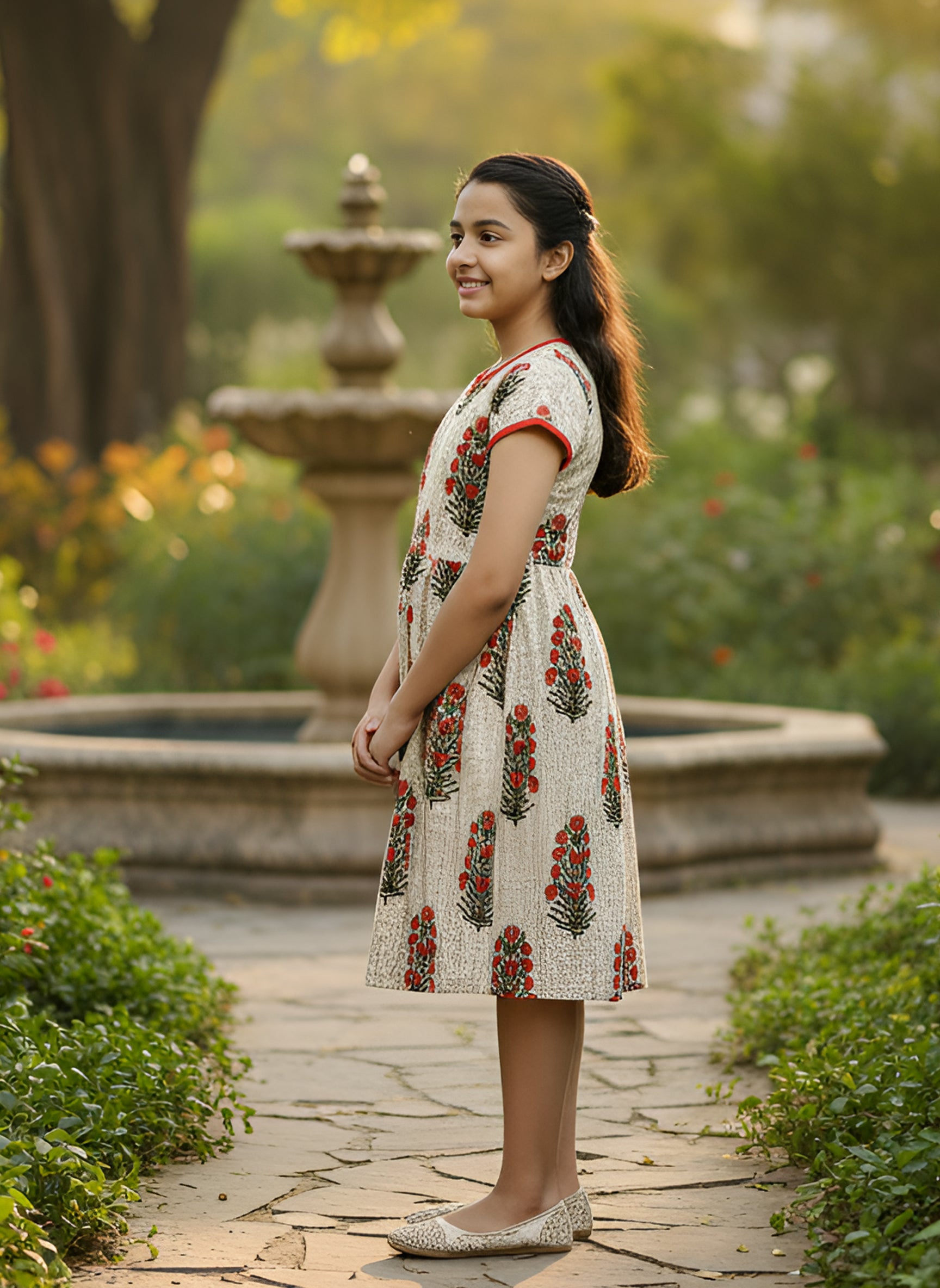 YASH GALLERY Kids Floral Printed Anarkali Kurta (Beige)