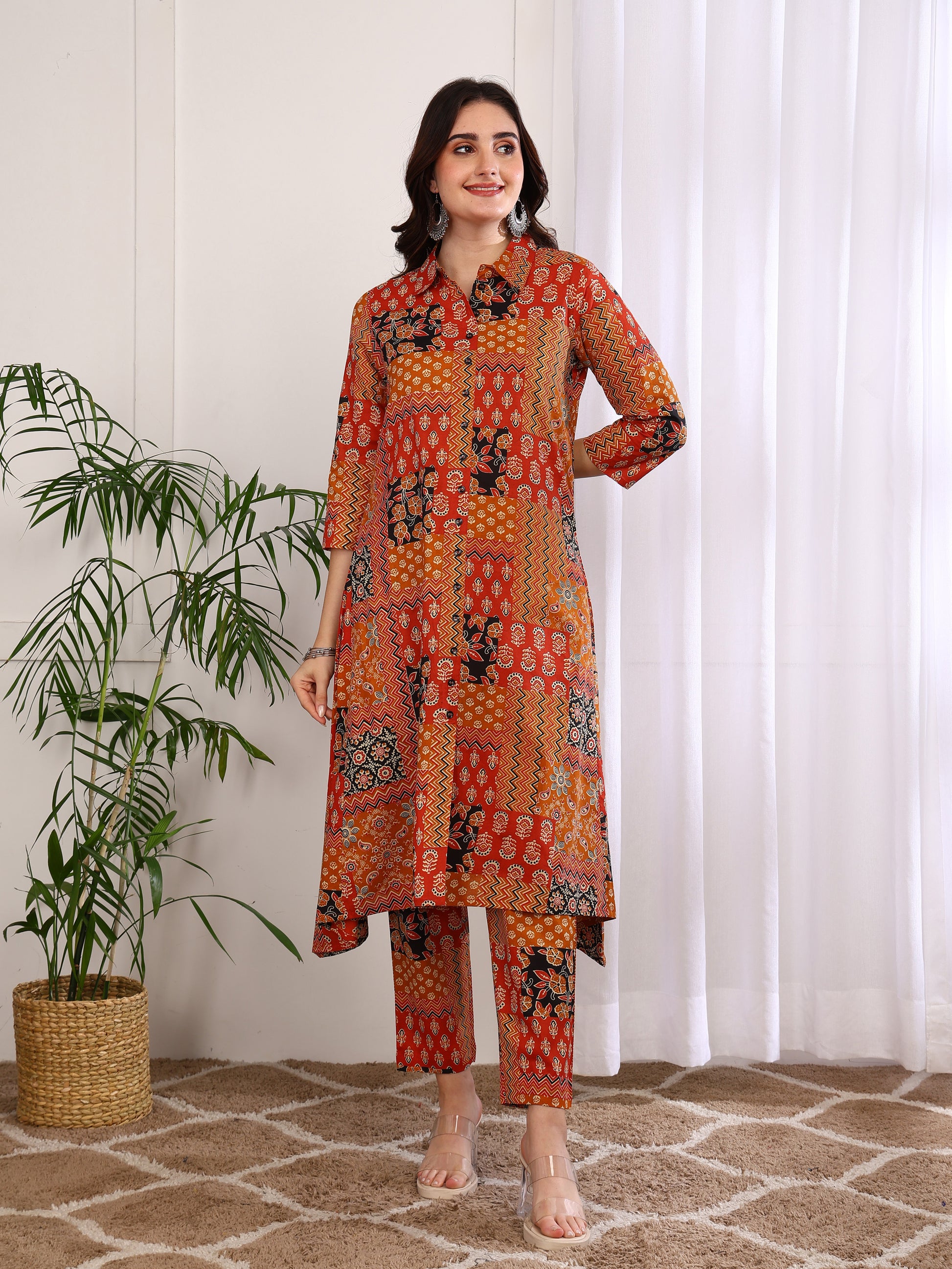 Yash Gallery Women’s Cambric Cotton Printed A-Line Kurta with Pant Set