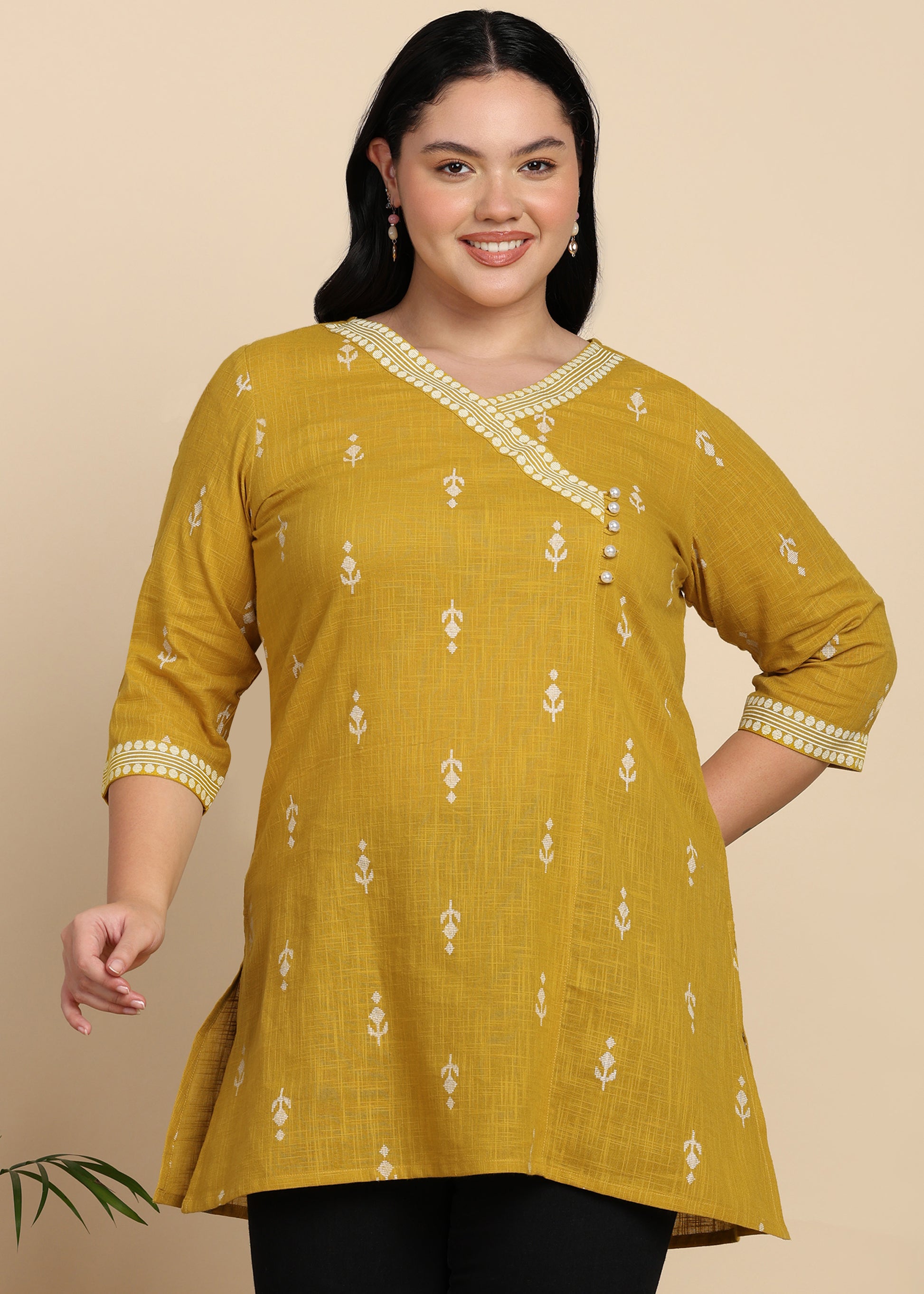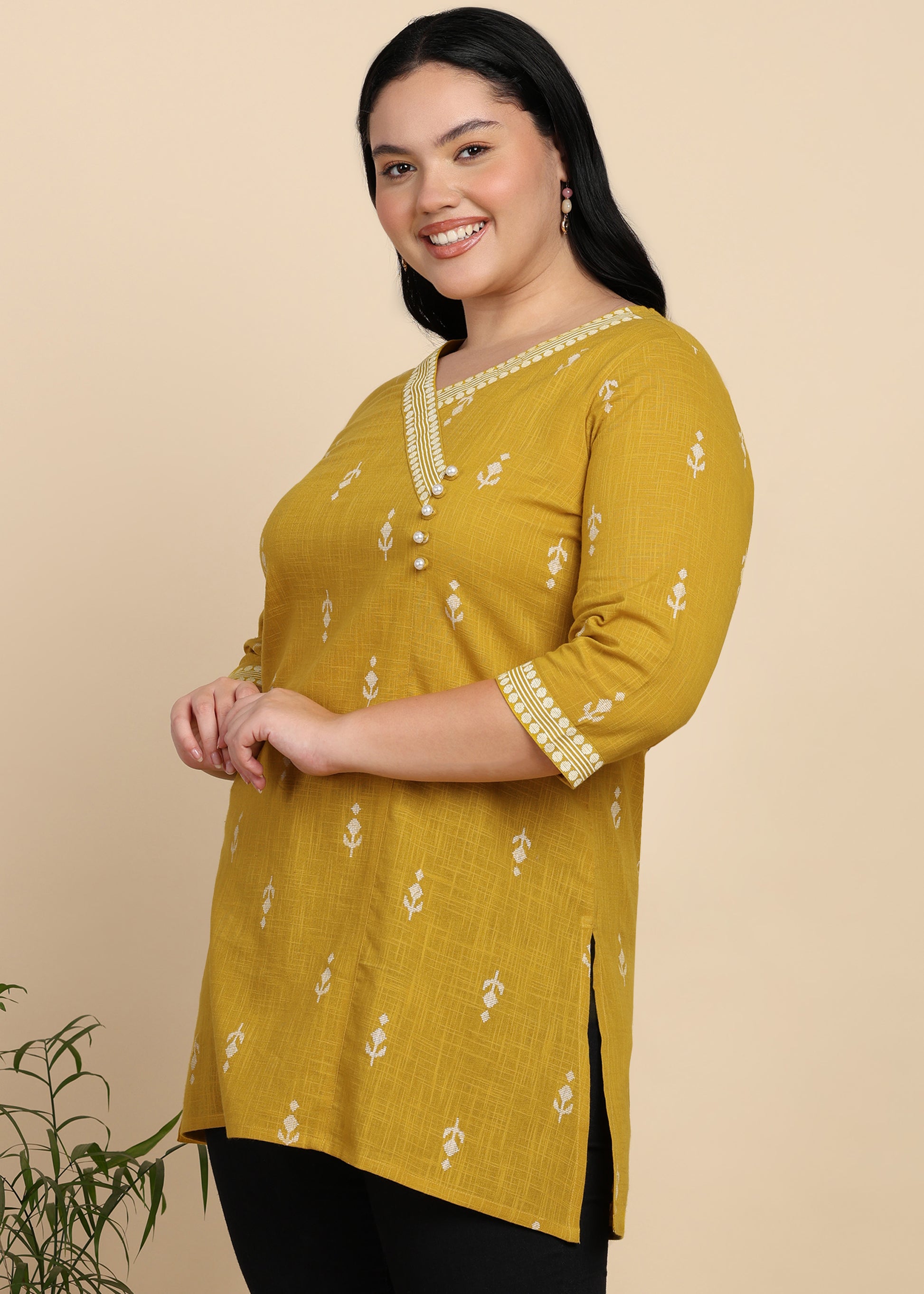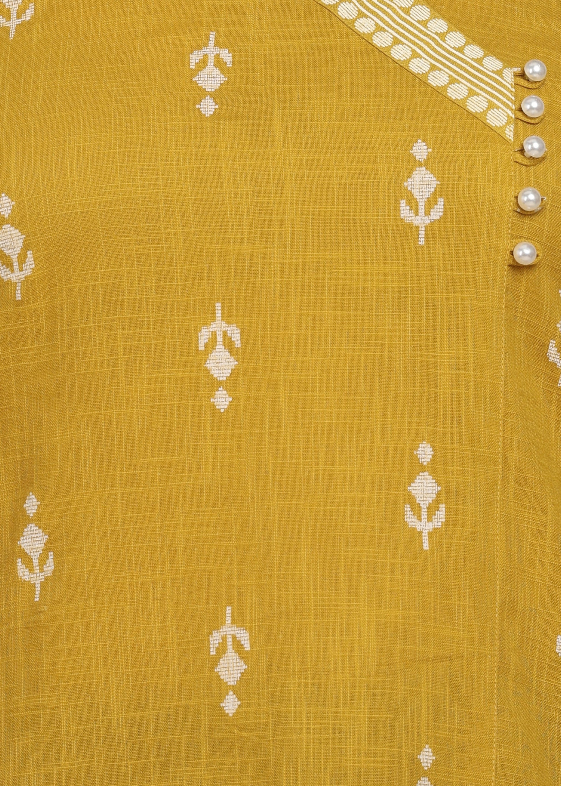 Yash Gallery Women’s Yellow Cambric Cotton Printed Straight Short Kurti