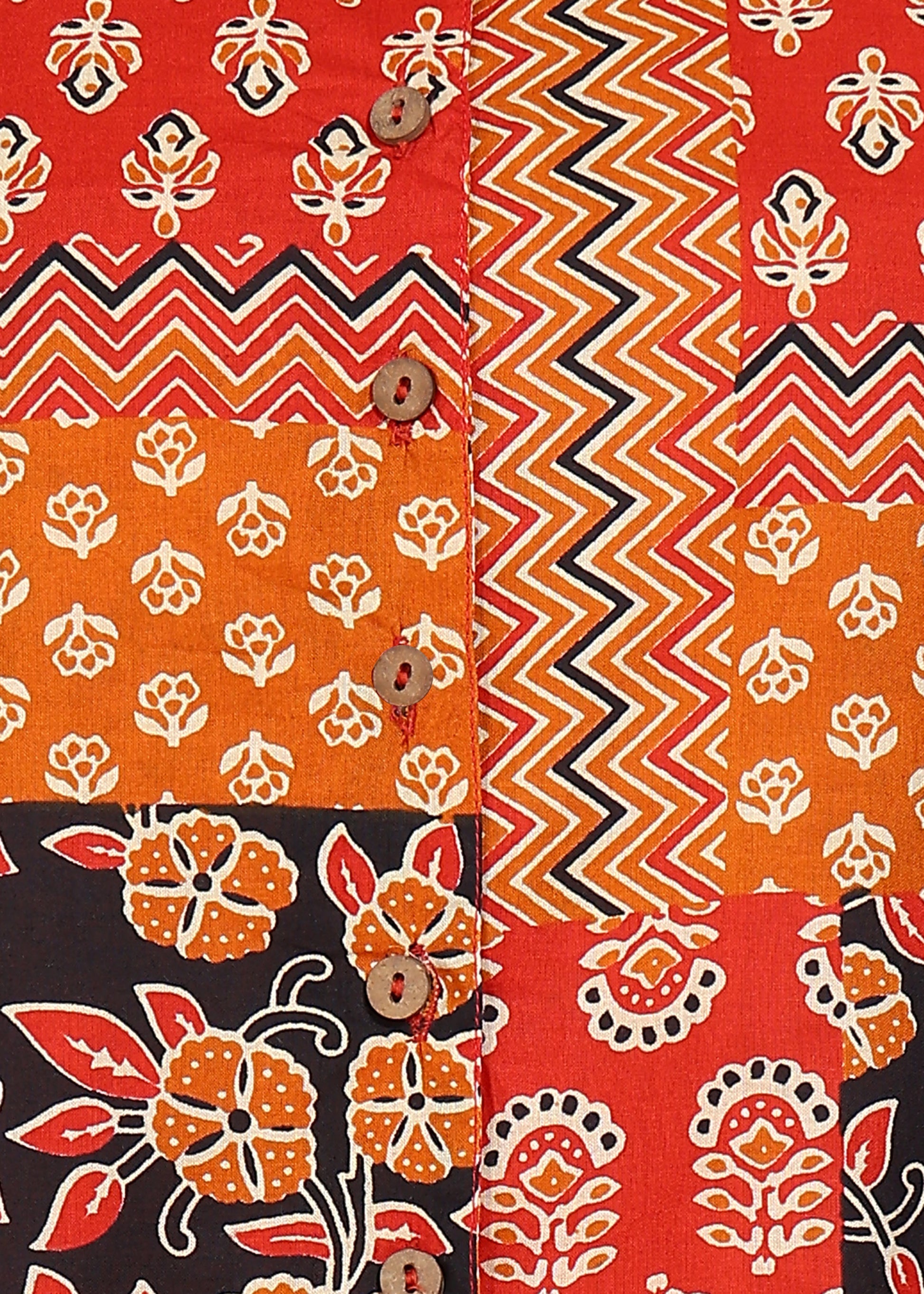 Blue Printed Cambric Cotton Short Sleeve Shirt Top