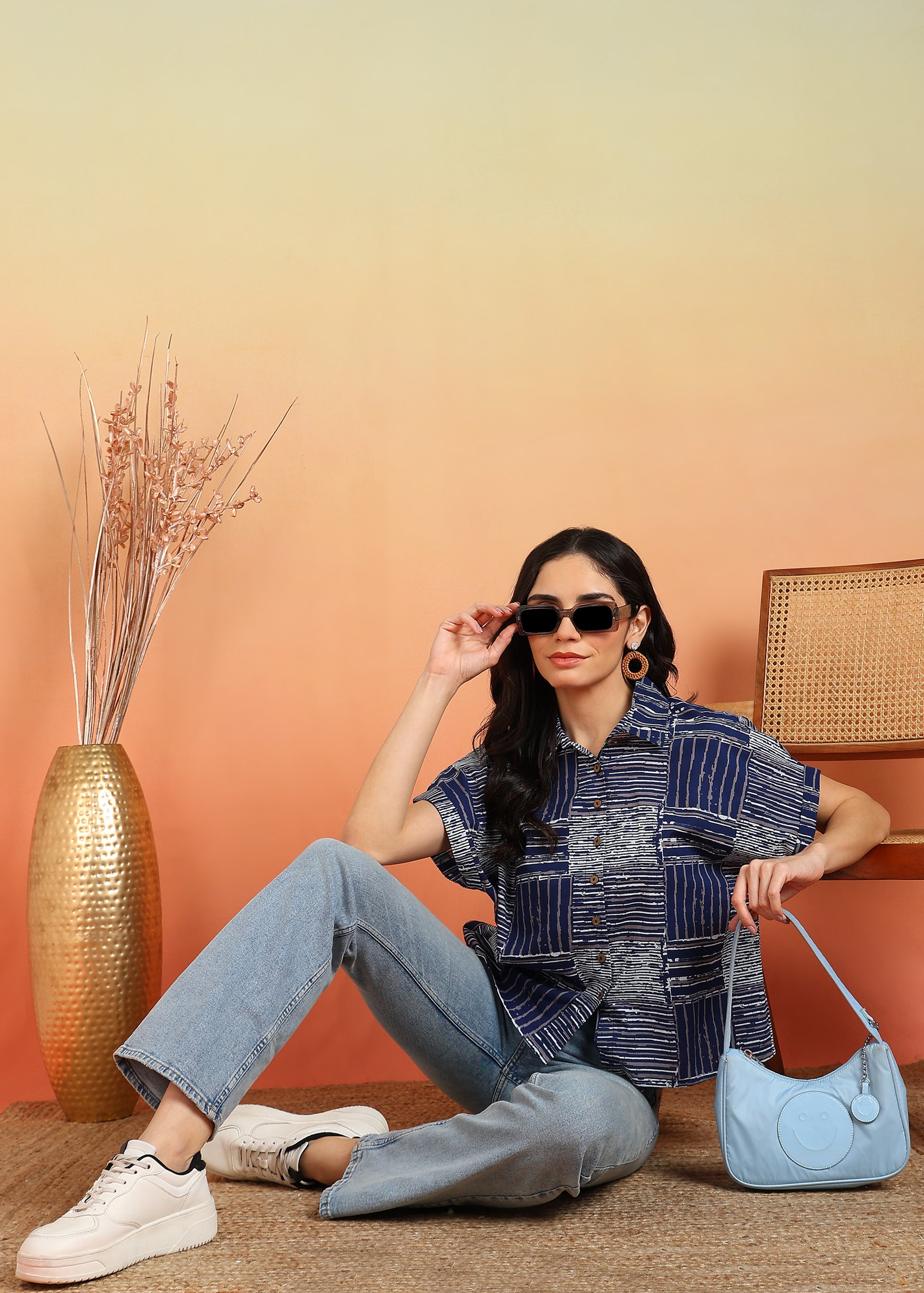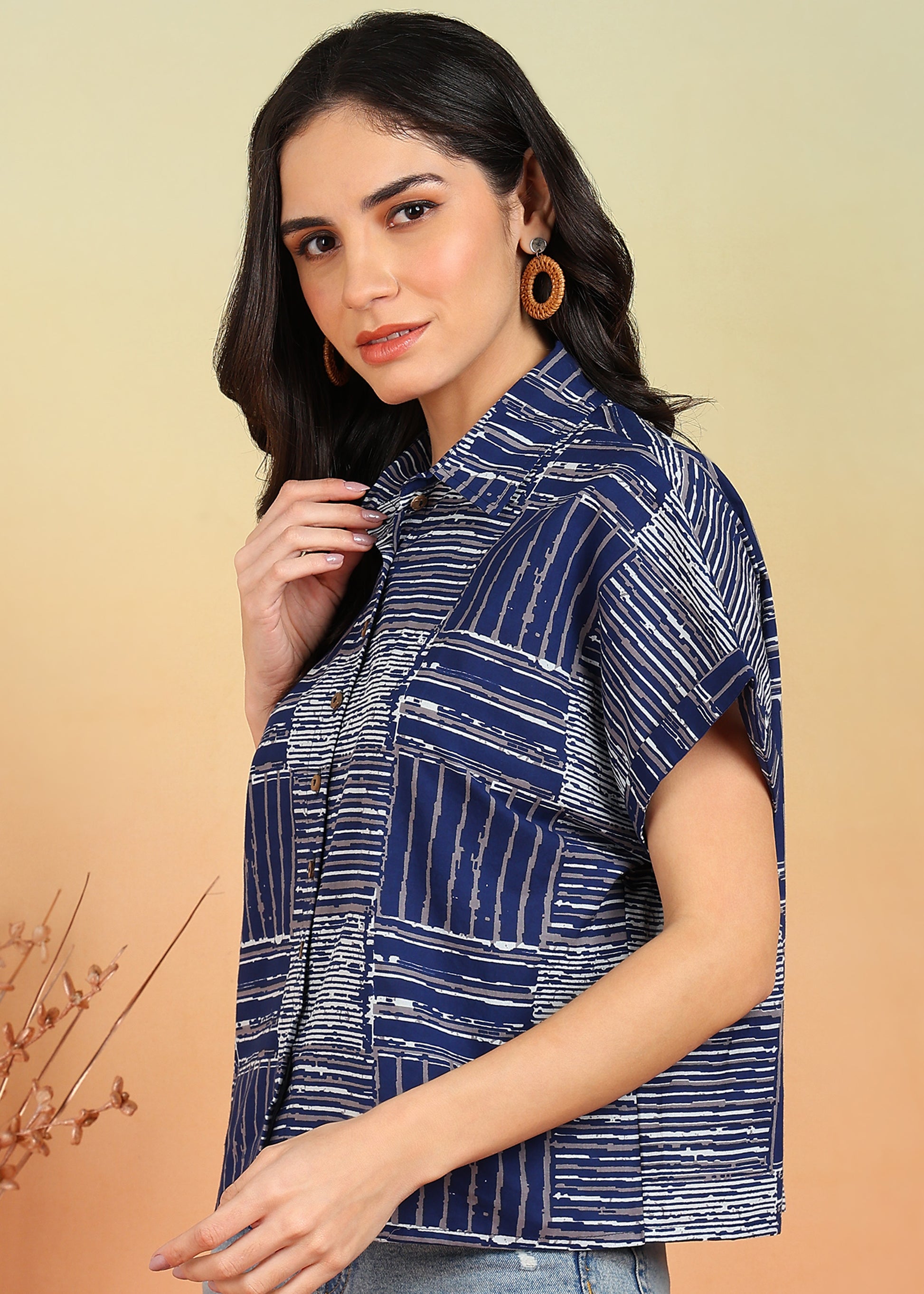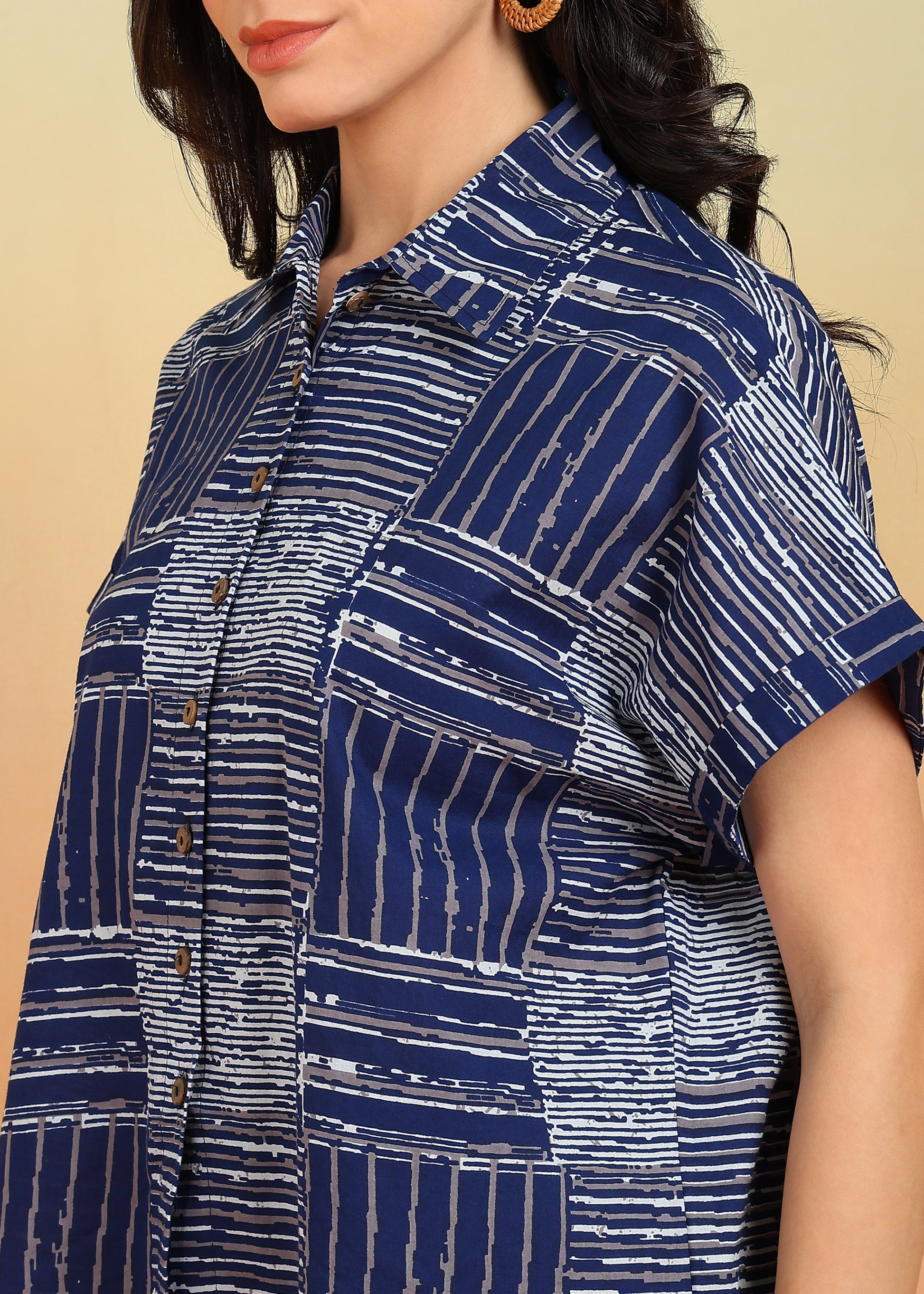 Cotton Geometrical Printed Half Sleeve Regular fit Collared Shirt (Blue)